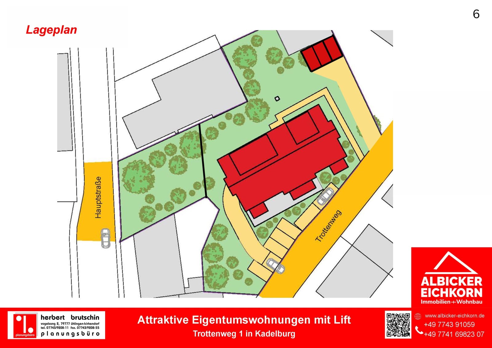 In zentraler und ruhiger Wohnlage von Kadelburg entsteht unser Mehrfamilienwohnhaus “Trottenweg 1”, verkehrsgünstig gelegen, nur wenige Gehminuten vom Dorfzentrum entfernt. Mit 9 Wohneinheiten in massiver Kalksandsteinbauweise errichtet, wird das Haus dem Ruhe- und Erholungsbedürfnis der Bewohner in besonderer Weise gerecht. Moderne Bauelemente in Verbindung mit traditioneller Handwerkskunst ergeben wohnliche und wertbeständige Eigentumswohnungen. Eine moderne Heizung ermöglicht zusammen mit dem hervorragenden Wärmeverbundsystem das Standard Effizienzhaus - Klimafreundliches Wohngebäude (KFN). Für den Bewohner bedeutet dies wohlige Wärme bei geringen Heizkosten. Die variable Grundrissgestaltung und das helle, lichtdurchflutete Interieur ermöglicht individuelles Wohnen in zeitgemäßem Ambiente. Vom 2-Zimmer Appartement bis zur 4-Zimmer Wohnung sind fast alle Wohnungsgrößen realisierbar.